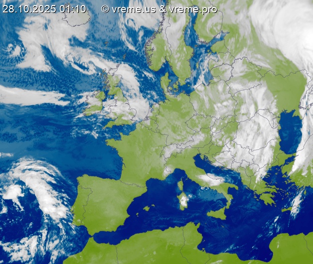 Prva slika prikazuje oblačnost v vidnem (podnevi), druga pa v infrardečem spektru.