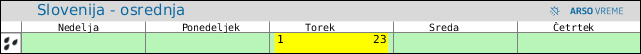 POZOR: ob spremenljivem vremenu se lahko napoved spremeni večkrat na uro.