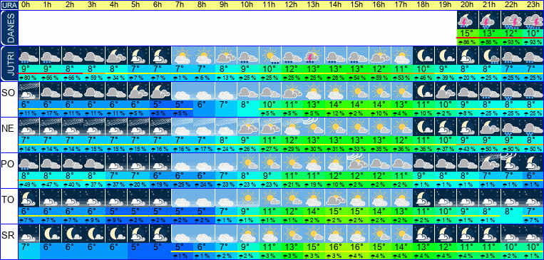 POZOR: ob spremenljivem vremenu se lahko napoved spremeni večkrat na uro.